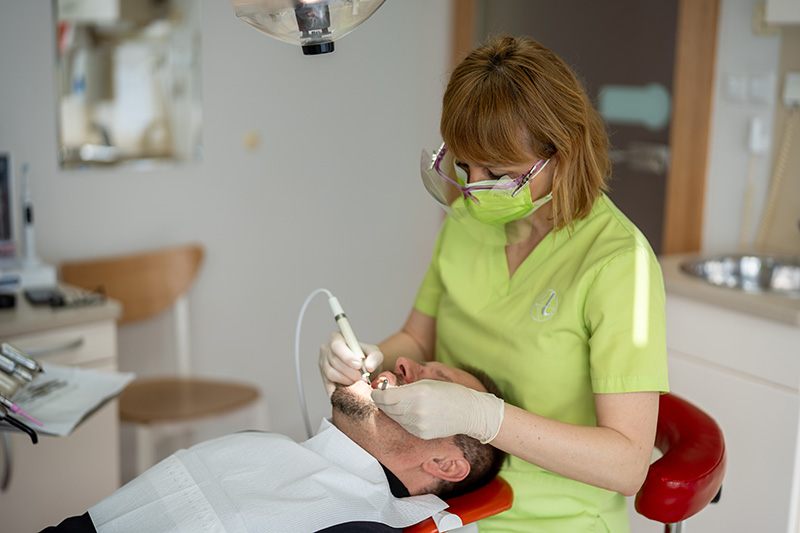 Przy zabiegach higienizacji stosujemy 8 stopniową procedurę GBT (Guided Biofilm Therapy).